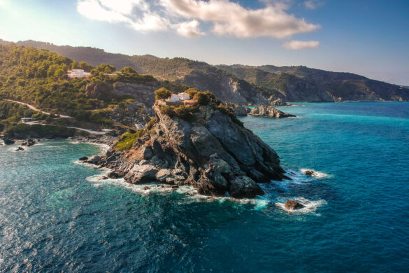 - Kastani Beach – One of the most recognizable locations from Mamma Mia!, this pristine beach was the setting for many of the film’s musical numbers. Surrounded by green hills and clear blue waters, it remains a must-visit spot for fans of the movie and guarantees to have you belting out a number or two from the film.