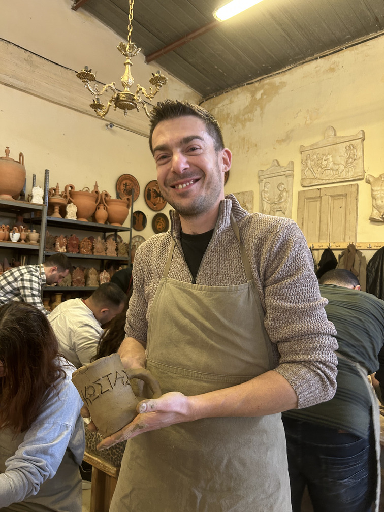 Feeling like ancient Greek masters (we use that term very loosely), we discovered just how much care, intuition, and artistry goes into even the simplest object. There was laughter, a bit of trial and error, some exasperation (maybe more than some), but ultimately plenty of appreciation for the artisans who keep this age-old craft alive. It was the kind of experience that slows you down, reconnects you to the tactile, and leaves you with a deeper respect for Greece’s living traditions.